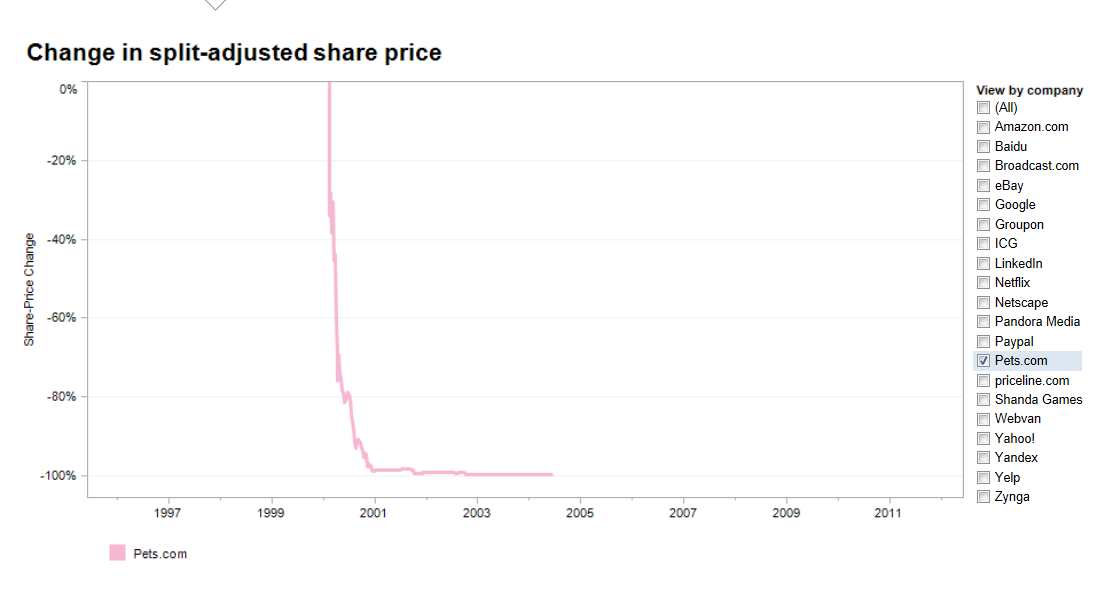 But, on the other hand, if we’re not talking about serious money, then we say go ahead, have a little fun.  Add a small position in a stock or two that you’d like to follow.  It will provide a great benchmark over time when measured against your serious money investments.  We even created a word for this – “specutainment”.  Those who have made a small fortune on Apple stock in recent years might have also invested in Webvan, which went to zero in 2001.
